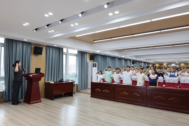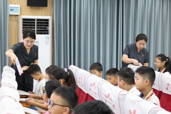 校园,本应是孩子们塑造品格、收获友谊的温暖家园。然而,校园欺凌现象的存在,如同一抹阴霾,可能给部 分青少年的健康成长带来难以估量的伤害。为有效预防和正确处置校园欺凌事件,9月4日上午,内黄县人民法院干警孙圣瑶、王琪以法治副校长的身份来到内黄县向阳路小学开展法治宣传活动,以法治为盾,全力护航青少年阳光、安全地成长。