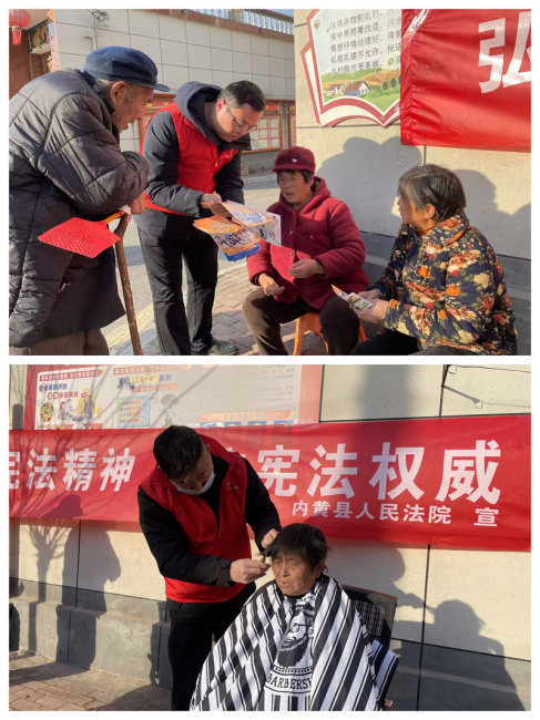 与此同时,志愿服务也同步开展,法院志愿服务队的同志早早备齐理发工具,专门为村里的留守老人提供免费理发服务。随着推子、剪刀的灵活操作,老人们原本有些过长的头发变得干净整齐,老人们脸上也漾起了满意的笑容。“法院同志不光给我们送法律知识,还提供贴心的便民服务,真是又专业又暖心!”刚理完发的大爷捋着清爽的新发型,不住地向干警们竖起大拇指。