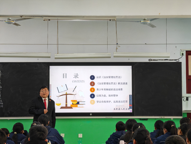 为进一步加强青少年法治宣传教育,预防未成年人犯罪,筑牢校园安全防线,近日,内黄县人民法院干警化身学校法治班主任,分别走进县域内多所中小学,开展以“青春不越界 《治安管理处罚法》涉未成年人规定”为主题的专题普法宣讲活动,用一堂堂生动实用的法治课,为青少年健康成长保驾护航。